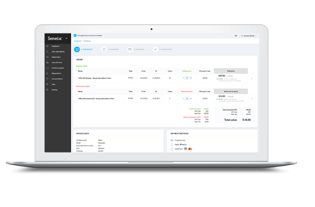 Senetic Portal allows subscribers to access all information regarding their O365, Cloud and Azure subscriptions in one place. They can see their current status, order new licenses and renew subscriptions, as well as reach out for technical support, basic and additional.